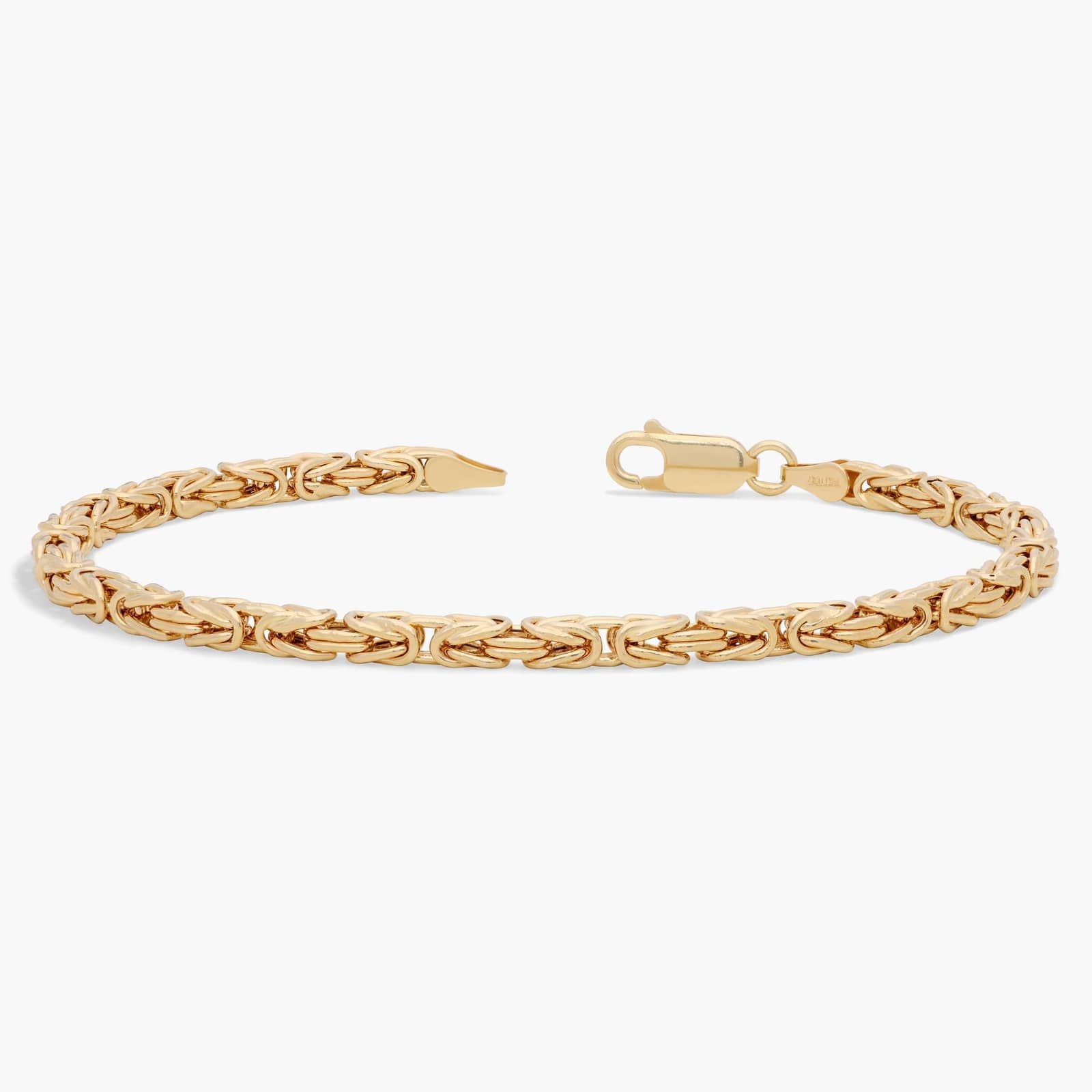 A weave of polished, hollow links in Italian 14k gold form our lightweight, distinctive petite Byzantine bracelet.