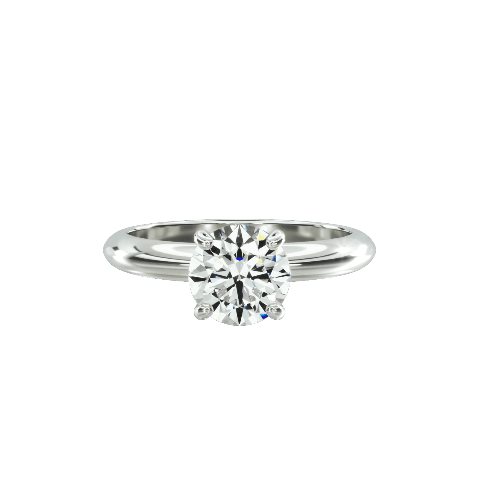14kt gold full round brilliant cut Diamond Solitaire set in A four claw setting with high polished comfort fit band. Available in store or Made to order with your choice of Centre Diamond size/clarity/color/