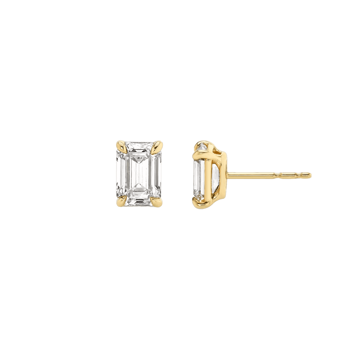 Emerald Cut Diamond Stud Earrings in Yellow Gold
