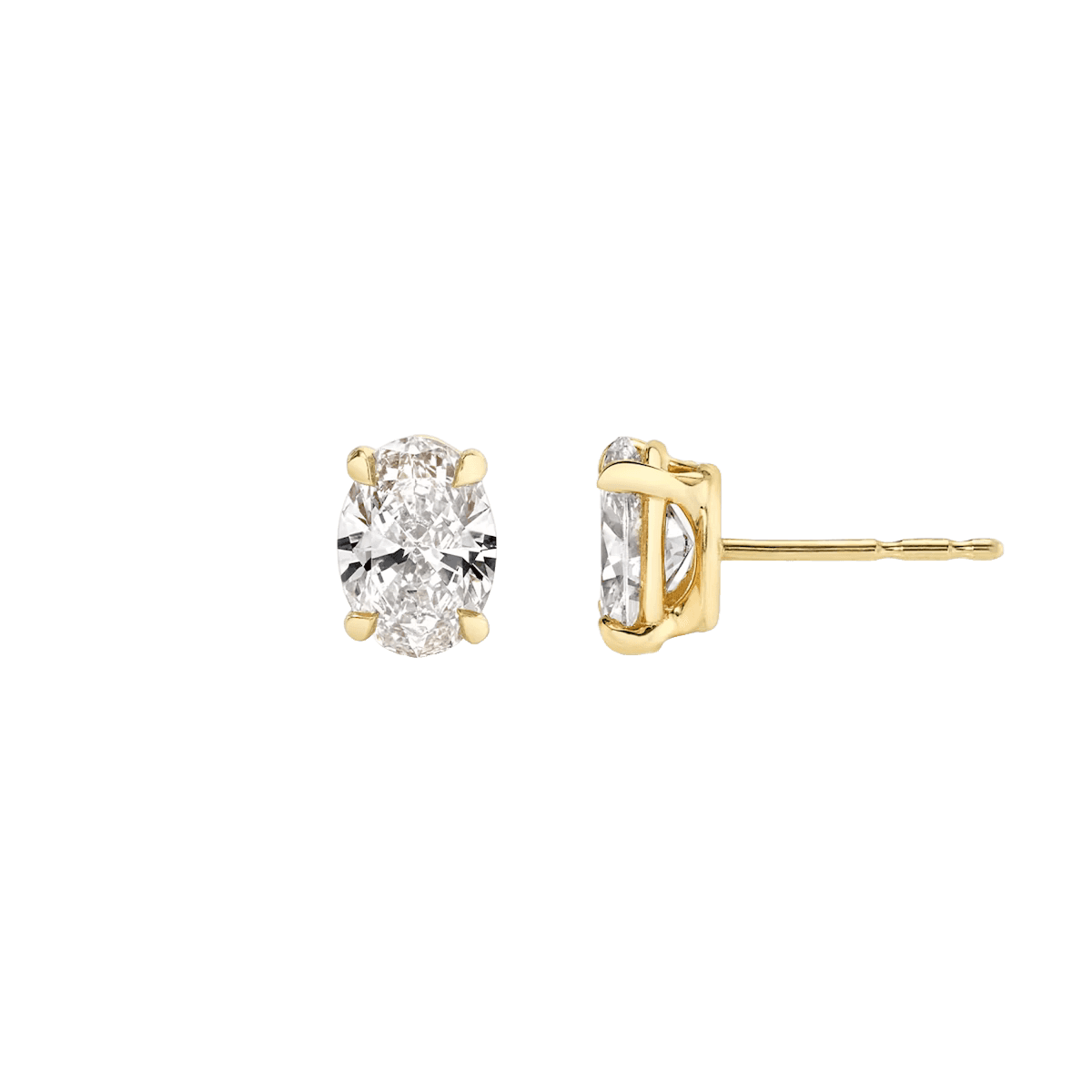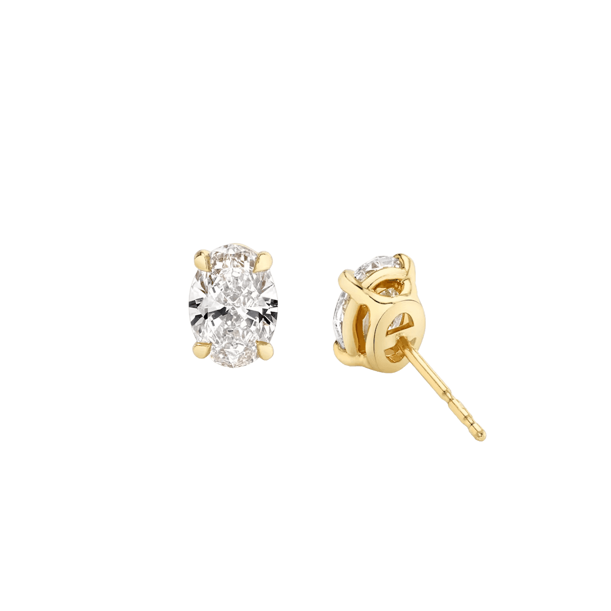 Oval Diamond Stud Earrings in Yellow Gold